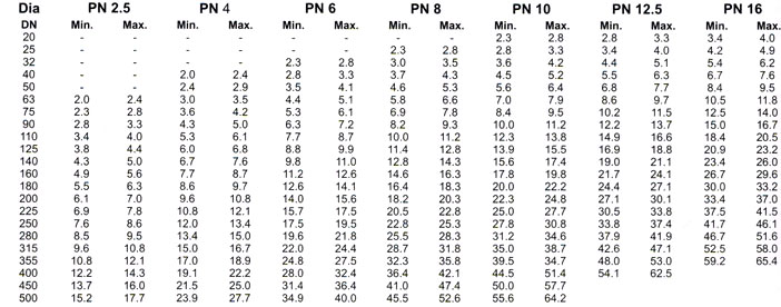 Dimension of HDPE Pipe (PE-80) for Pressure Rating of IS : 14333-1996 :