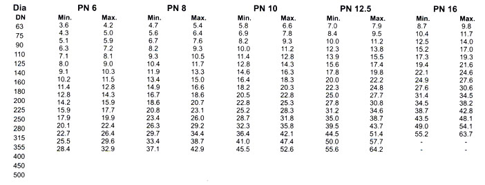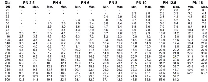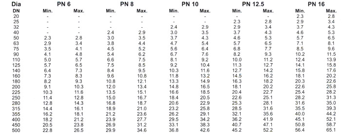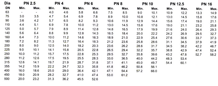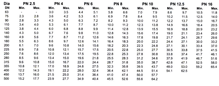 Dimension of HDPE Pipe (PE-63) for Pressure Rating of IS : 4984-1995 :